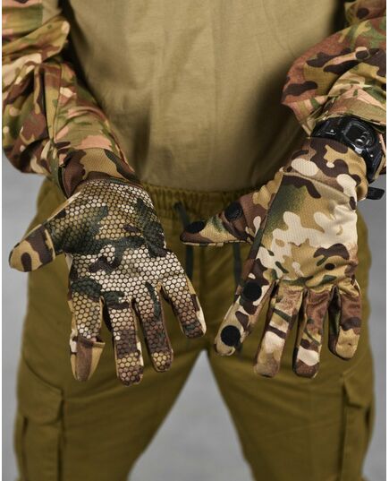 Тактичні військові повнопалі рукавички є невід'ємною частиною спорядження військовослужбовців, загонів спеціального призначення, силовиків, СБУ при виконанні стратегічних завдань будь-якого рівня складності, відмінно підходять для бойових мистецтв і боротьби, проведення тактичних ігор, активного спорту, так як здатні забезпечити гранично зручний і максимально надійний хват. Долонна частина посилена прогумованою сіткою, що сприяє надійному хвату. На зап'ясті є зручний манжет для надійної фіксації. Вказівний і великий палець на рукавичках знімаються на верхній фаланзі, щоб можна було скористатися сенсорними пристроями. Рукавички виготовлені з текстилю, що відмінно допомагає шкірі дихати. Манжети рукавичок запобігають попаданню сміття всередину і кращій фіксації.