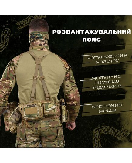 Модульний тактичний пояс виготовлений з якісних матеріалів, комфортний і зручний у використанні. Варбелт має систему кріплення MOLLE, може налаштовуватися під обхват талії та надійно фіксується за допомогою пояса, протягнутого через весь варбелт.