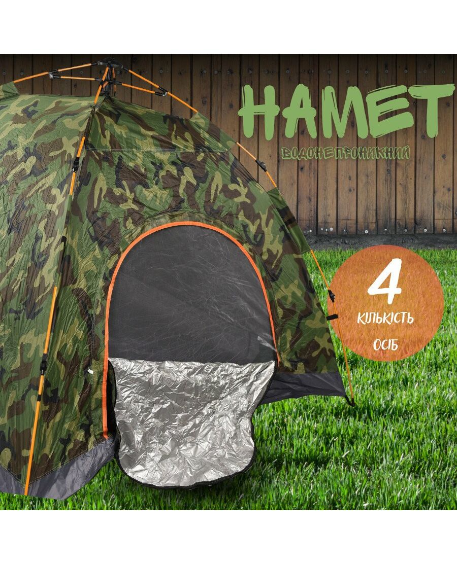 Намет 4 місцевий призначений для заняття альпінізмом, туризмом та всіма видами активного відпочинку. Конструкція забезпечує можливість швидкого збирання. У комплекті є зручна сумка-чохол для зручного перенесення та зберігання намету. Намет потрібно берегти від відкритого вогню та високих температур. Намет має форму півсфери, є один вхід та віконце з москітною сіткою. Намет НЕ є автоматичним.
