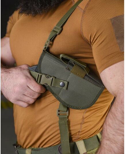 Ця кобура призначена для прихованого носіння пістолета & двох додаткових магазинів . Вона виготовлена із щільної кардюри , що забезпечує міцність, довговічність та комфорт при носінні.