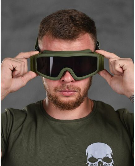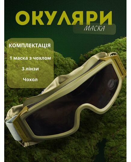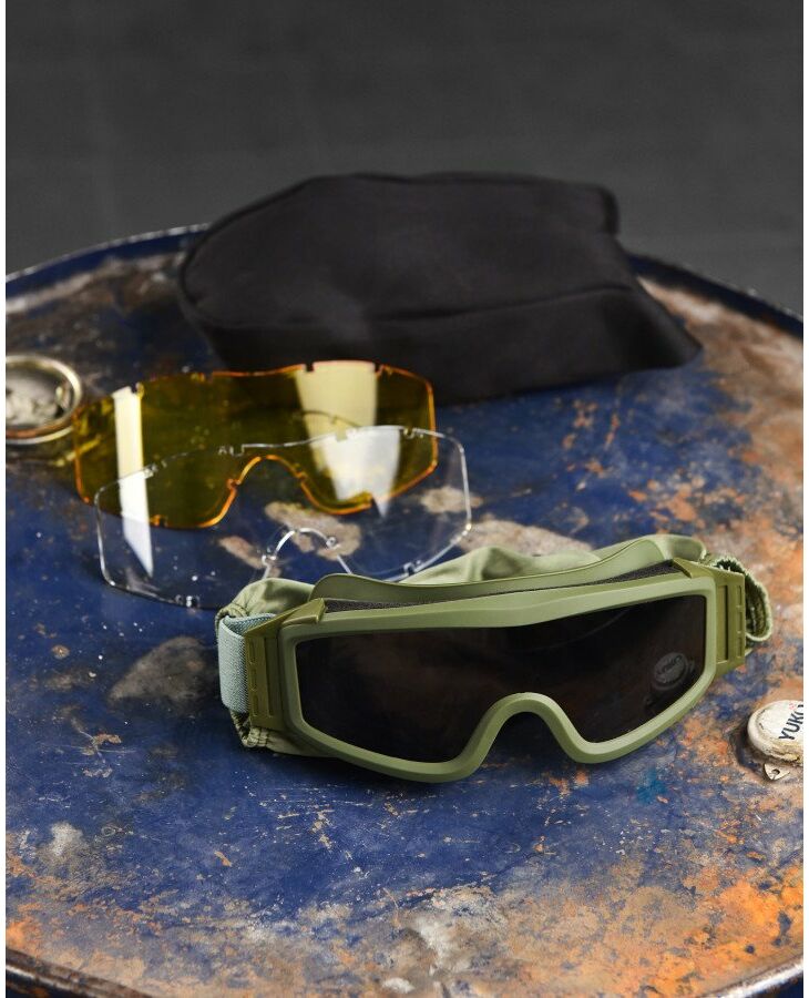 Тактичні окуляри маска E-Tac WT-12 + змінні лінзи (1 окуляри та 3 лінзи) олива ВТ1159