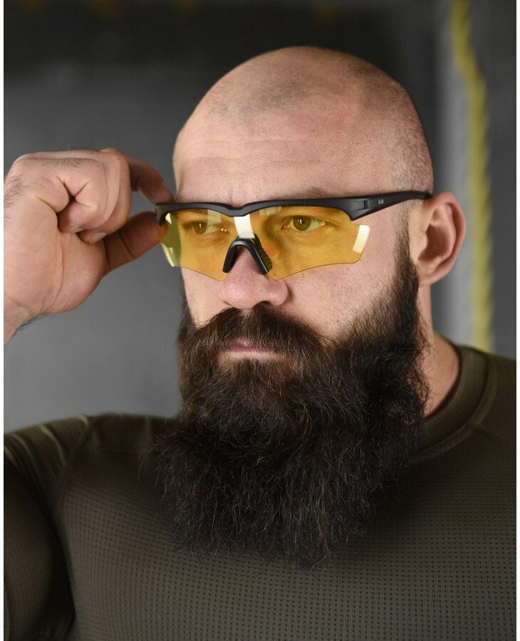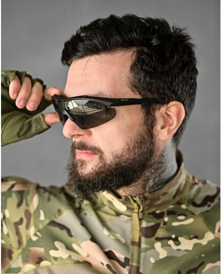 Душки з гумовими вставками, .Матеріал: полікарбонат З поляризацією 1 чорна лінза Ці лінзи не спотворюють зображення, захищають ваші очі від механічних впливів та від ультрафіолетових променів з довжиною хвилі близько 400 нм (UV-A, UV-B та UV- C). Жорсткий кейс. . Комплект: - лінза димчаста - лінза жовта - лінза прозора - міцні нейлонові дужки - м'який чохол-протирка - жорсткий чохол-футляр з ремінцем з кріпленням під систему MOLLE - страхувальний шнур для оправи Розмір: Ширина очок 142 мм оправ. Ширина носоупору 35 мм. Довжина скроні 129 мм.