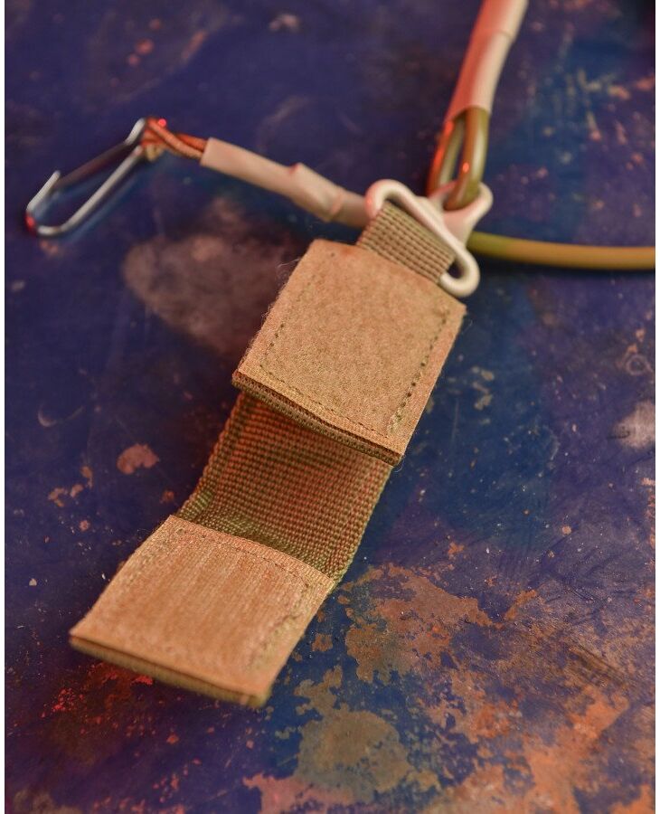З одного боку шнура є тренчик із міцної поліамідної стрічки шириною 25 мм. Тренчик застібається на липучку-велкро. Він розрахований на максимальну ширину ременя 5 – 5,5 см (портуп'яний чи тактичний ремінь). За рахунок molle спільного підвісу можна закріпити елементи військового спорядження. Пластиковий фастекс у верхній частині дозволяє миттєво відстебнути шнур.