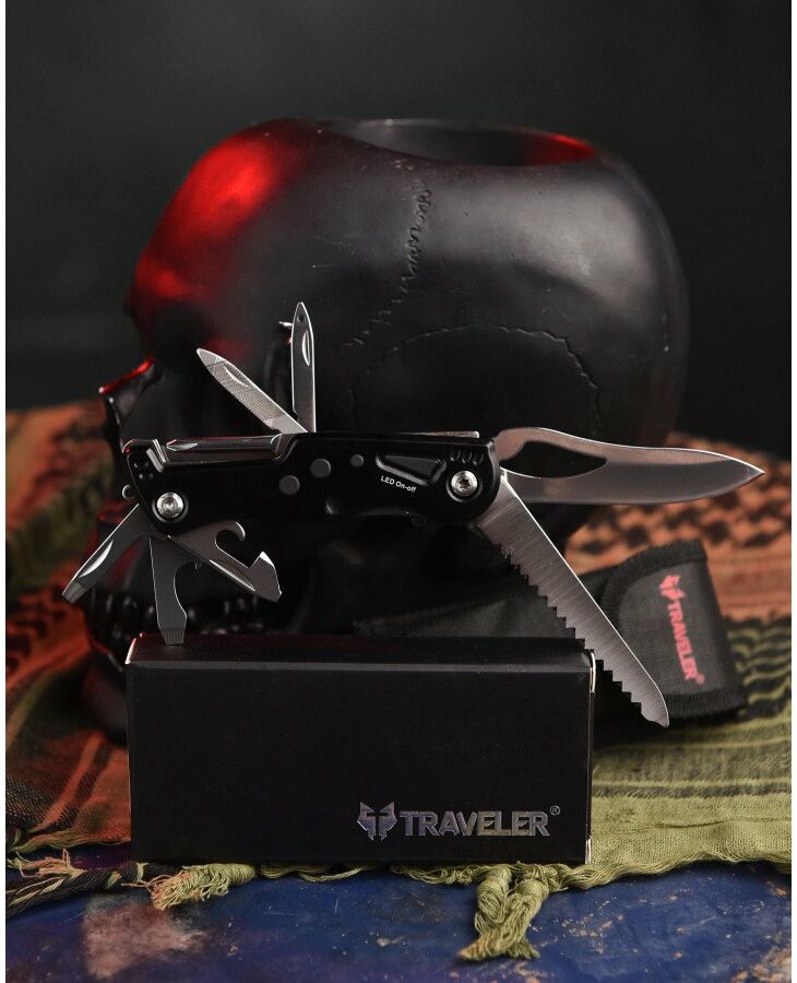 Мультитул steel black із ліхтариком ВН11055