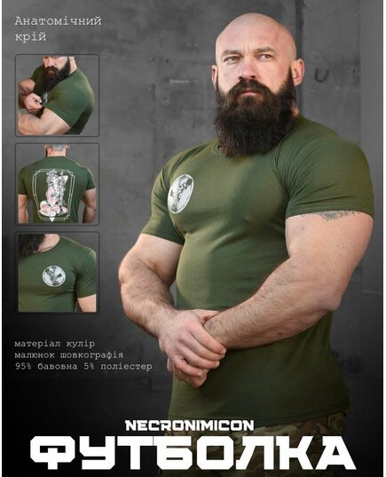 Тактична Бавовняна футболка NECRONIMICON хостер олива НП5203