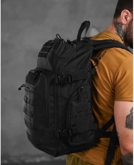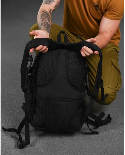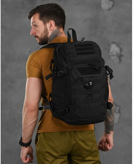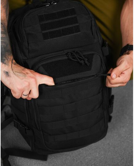 Тактичний рюкзак виготовлений з оксфорду 600D. Це досить міцний матеріал, що має стійкість до вологи. Рюкзак тактичний має систему кріплення MOLLE, що дозволяє кріпити до нього необхідне спорядження в будь-якому зручному для вас місці.