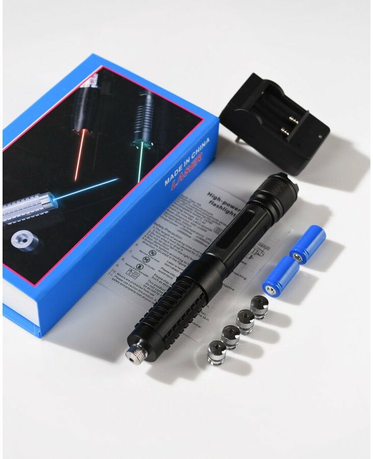 Мощна лазерна указка / гармата / Ліхтар лазер синій YX-B015, 5 насадок, GS2, лазерна указка, лазерний промінь