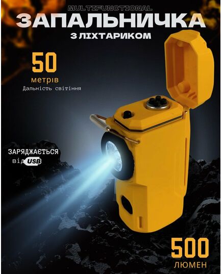 Ліхтарик-запальничка MULTIFUNCTIONAL D50-COB black & Потужність світлового потоку: 500 люмен Дальність світіння: 50 метрів Світлодіод: COB Колірна температура: 4500 K Джерело живлення: Вбудований акумулятор, зарядка від USB Колір світлодіода: Вологозахищений корпус Індикація рівня заряду батареї Підходить для походів, риболовлі, автосервісу та повсякденного використання Легкий та компактний Надійний помічник у будь-якій ситуації!