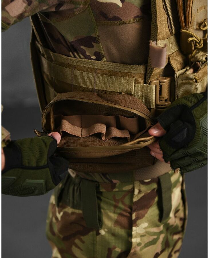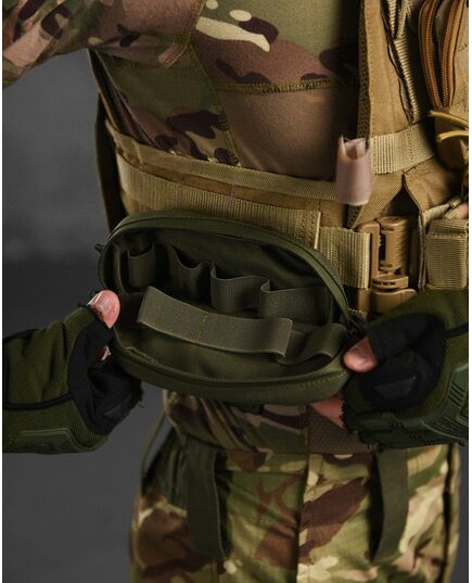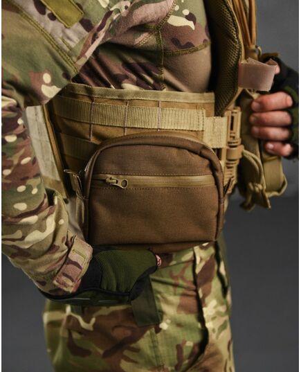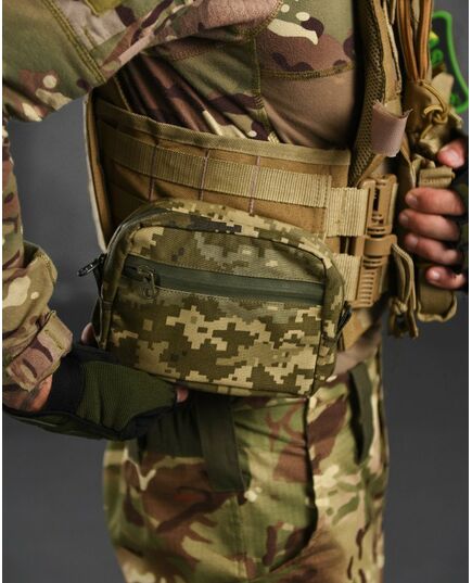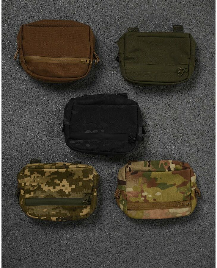 Призначений для перенесення різноманітного малогабаритного спорядження: патрони розсипом, додаткові магазини, запасні акумулятори для радіостанції і т.д. На тильній стороні результату розташована система molle для кріплення на будь-яке спорядження має панелі фіксації системи MOLLE. Підсумок має два відділення: всередині та збоку. Змійки результату прогумовані. Також усередині знаходяться еластичні ремені для закріплення поздовжніх негабаритних речей. Розміри: 20х15х5 см ● Матеріал: Cordura Nylon 1000D, колір Піксель, Хакі, Койот та Чорний Мультикам.