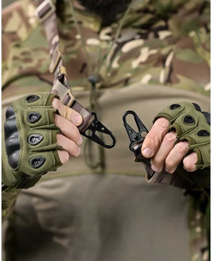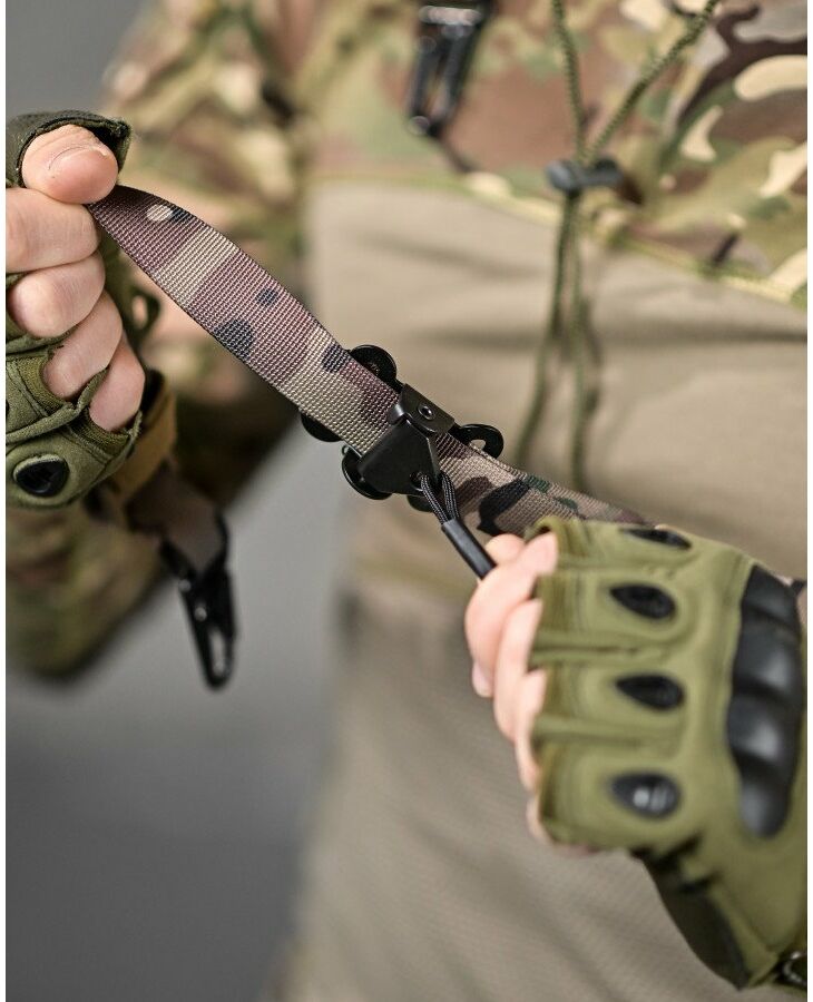 - Стропа кріпиться на задню антабку у приклада або на QD-антабку.