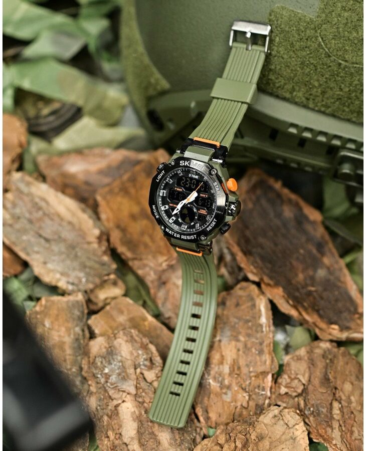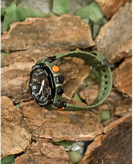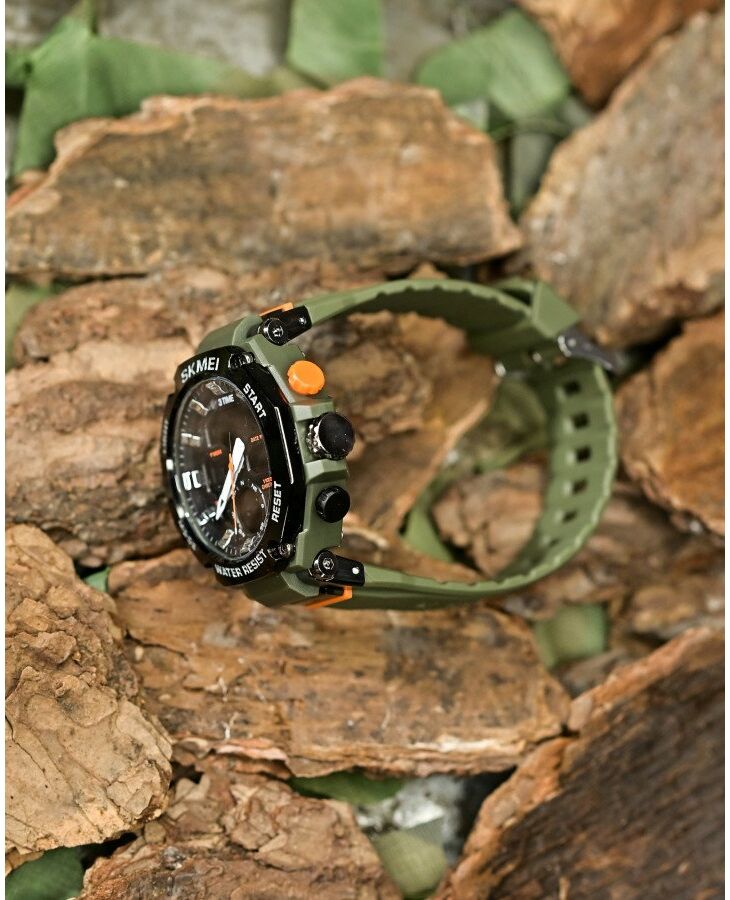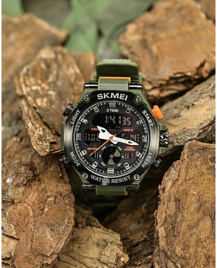 Чоловічі наручні годинники в масивному крепкому корпусі від компанії SKMEI. Подвійна індикація часу – аналоговий стрілочний циферблат і цифровий дисплей.