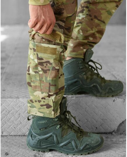 •У штанах присутня -10 основних кишень, у зоні стегна присутні накладні кишені з липучками, де розміщена гумка для фіксації магазину під АК/РПК.