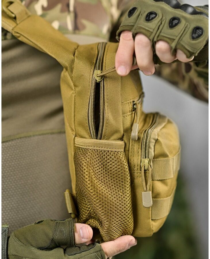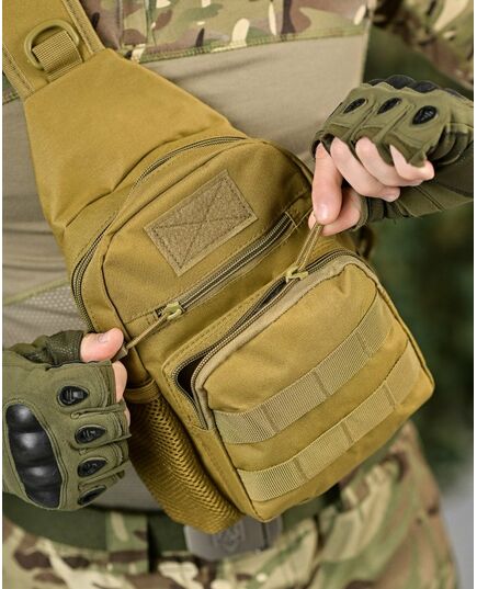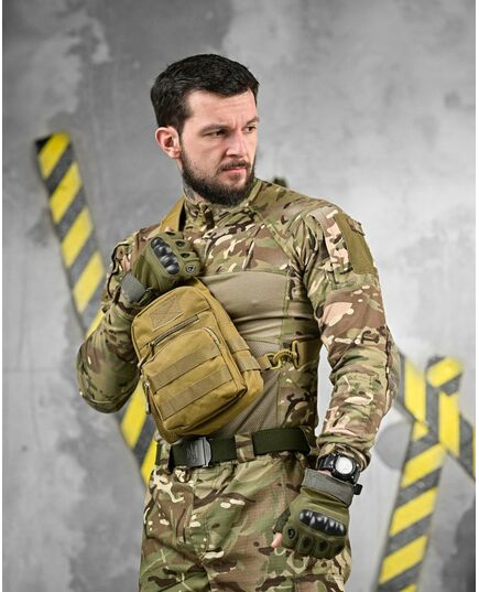 Ця компактна та вмістка сумка виготовлена з високоякісного поліестеру, ідеально підійде для військових, мисливців, туристів та всіх, хто цінує функціональність і надійність. Система кріплення MOLLE дозволяє легко прикріпити додаткове спорядження, таке як підсумки, фляги, ножі та багато іншого. Сумка має ергономічний дизайн і зручно лягає на плече, забезпечуючи комфорт навіть при тривалому носінні.