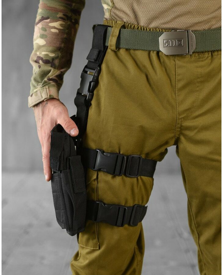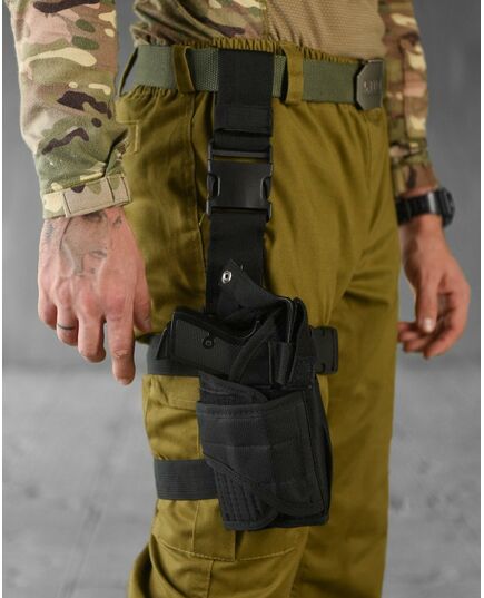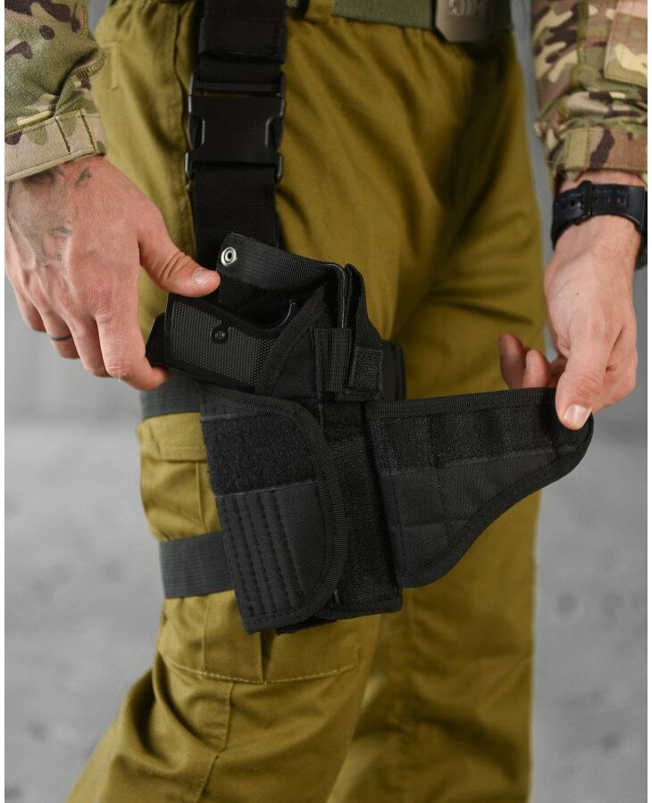 Універсальна тактична кобура підходить для всіх основних видів пістолетів (ПМ, Форт 12, Форт 17, ТТ, Стєчкін та ін.). Виготовлена із високоякісного матеріалу Oxford D-800. Стійка до стирання.