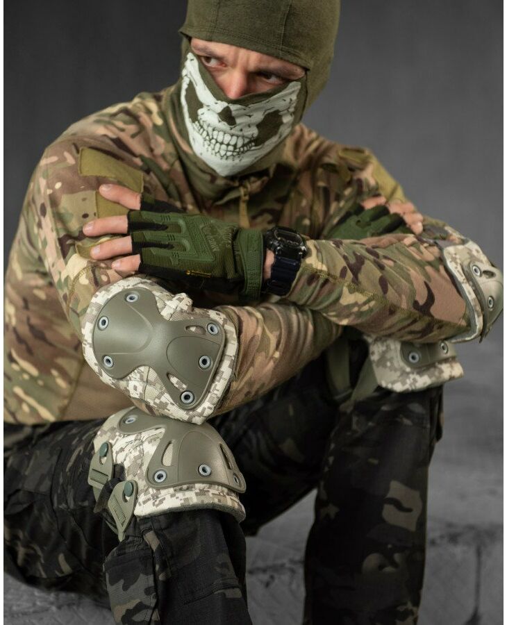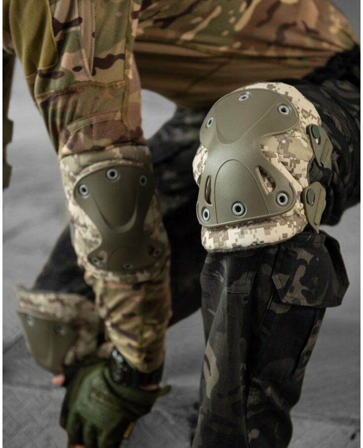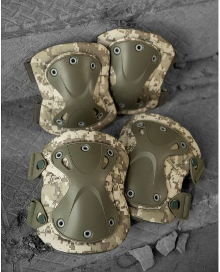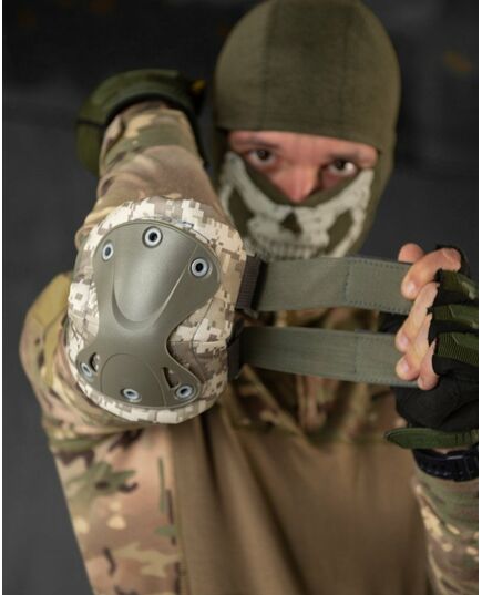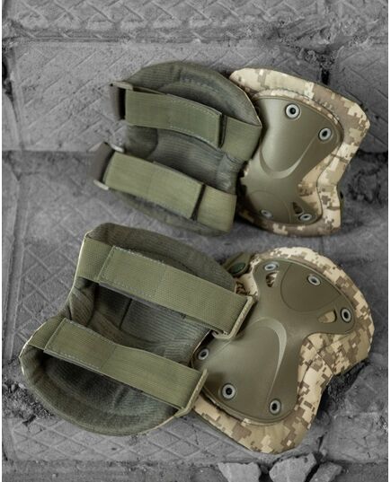 Захист тактичний призначений для захисту ліктьового та колінного суглобів від пошкоджень та травм. Наколінник і налокітник складається з пластикової захисної панелі і м'якої основи, що амортизує. Кріпиться двома еластичними стрічками із системою швидкого зняття. Регулювання розміру на липучках. Не обмежує рухів при ходьбі та бігу. , 2 налокітники.