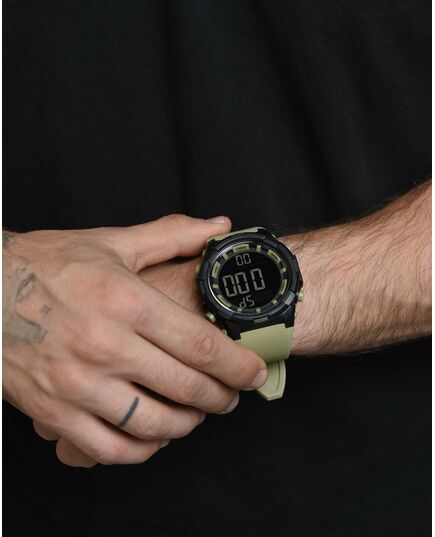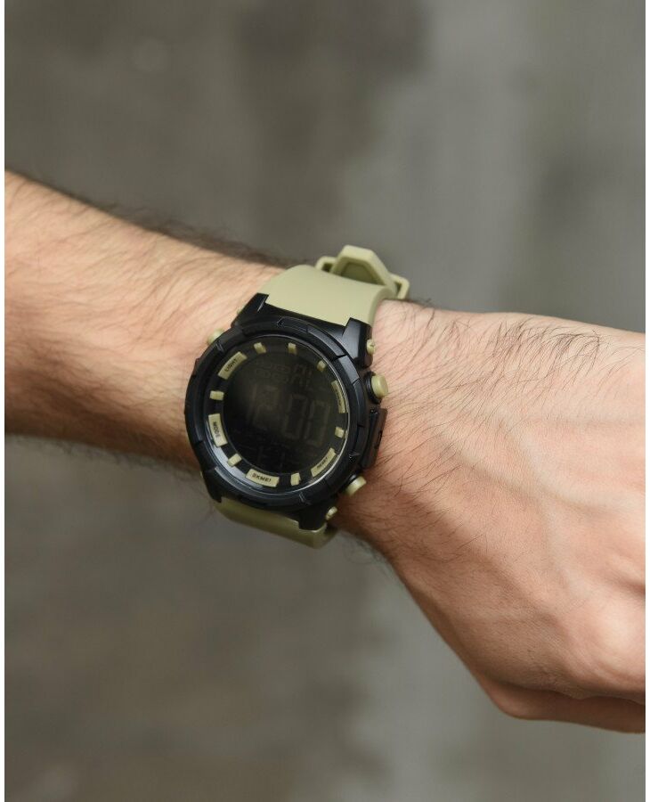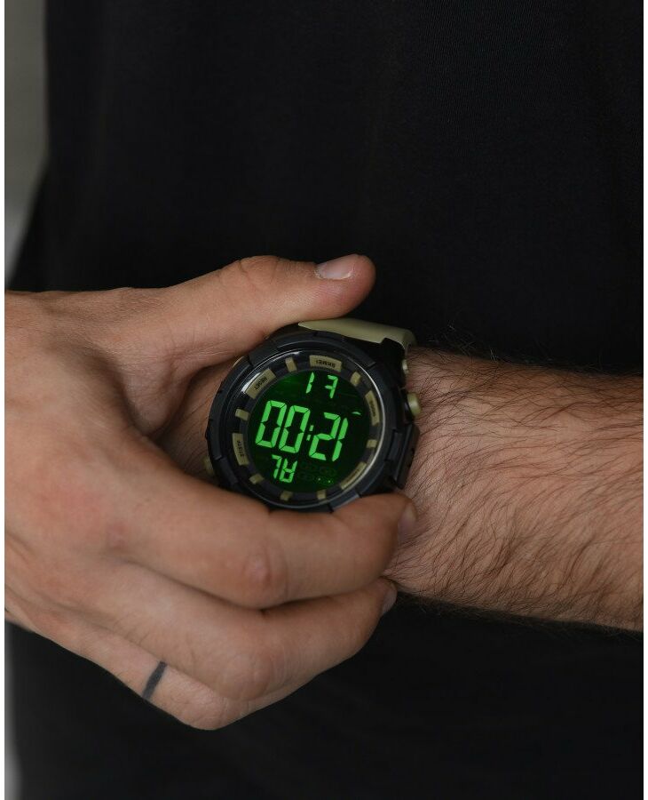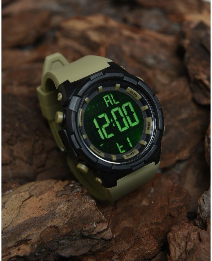 Електронний наручний годинник з великим дисплеєм і гумовим ремінцем. До функціоналу годинника відноситься наявність будильника, погодинного сигналу, секундоміра, індикатора дати і дня тижня, м'якого неяскравого підсвічування цифр для темної пори доби. Великий круглий корпус годинника виготовлений з приємного на дотик пластику і має спортивний дизайн. Години SKMEI 1025 мають водонепроникність 5 атмосфер (50 метрів), що дозволяє мити в них руки, плавати (але не пірнати) або приймати душ. Скористайтеся формою миттєвого замовлення, щоб купити годинник SKMEI 1025. : 1025