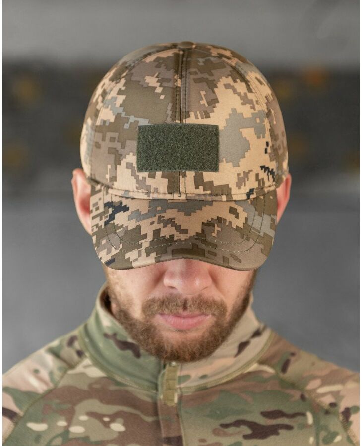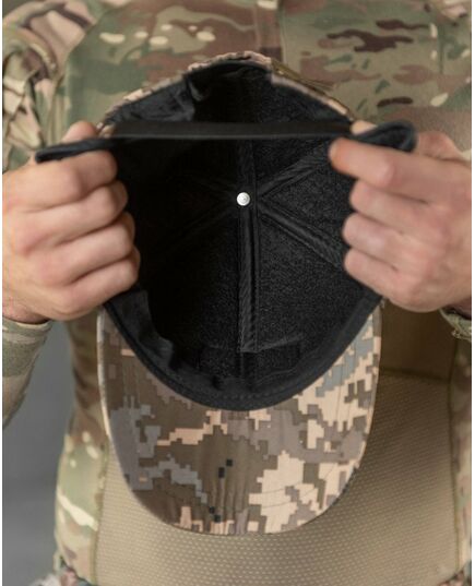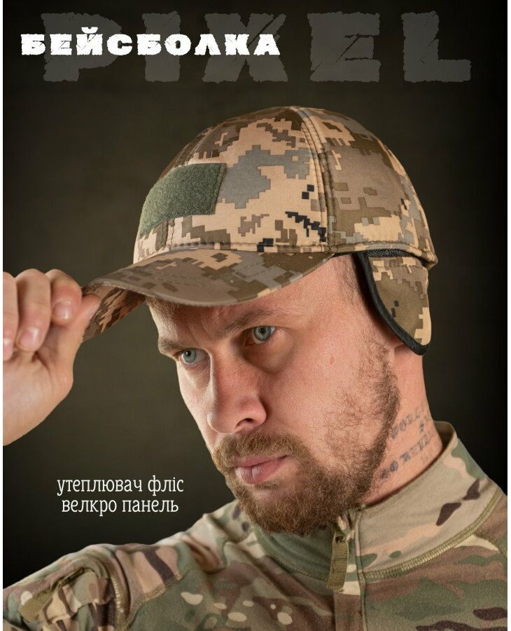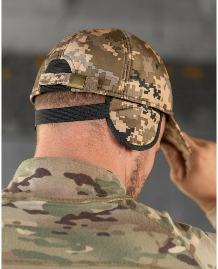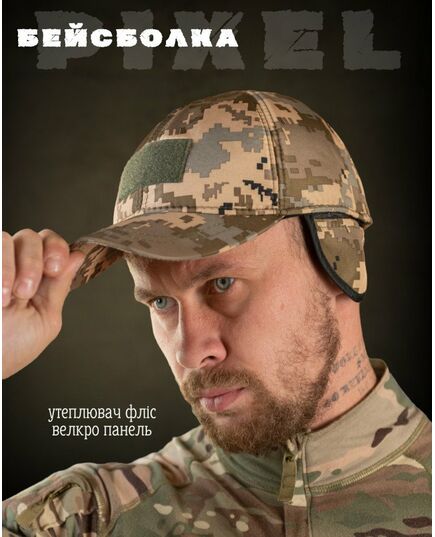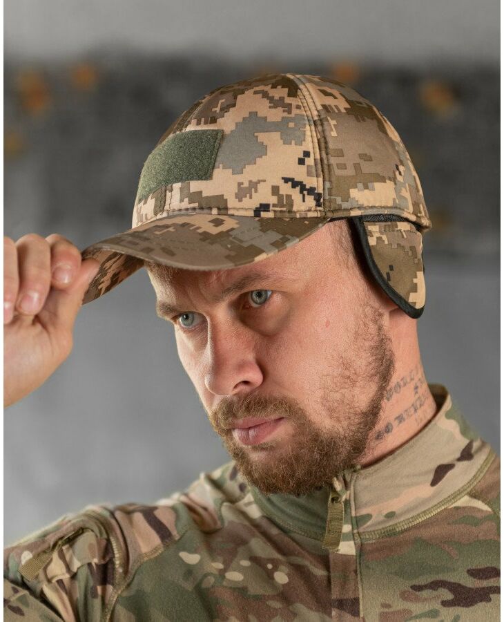 Утеплена бейсболка піксель із вухами липучка ВТ7809