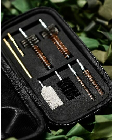 Склад набору: - шомпол з 4-ма насадками - 2 мідні щітки - 2 ершики для чищення патронника - пушок - вішалка - пластиковий щітка - зацеп - ерш нейлоновий - вішалка - серветка