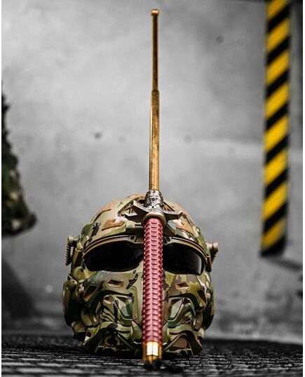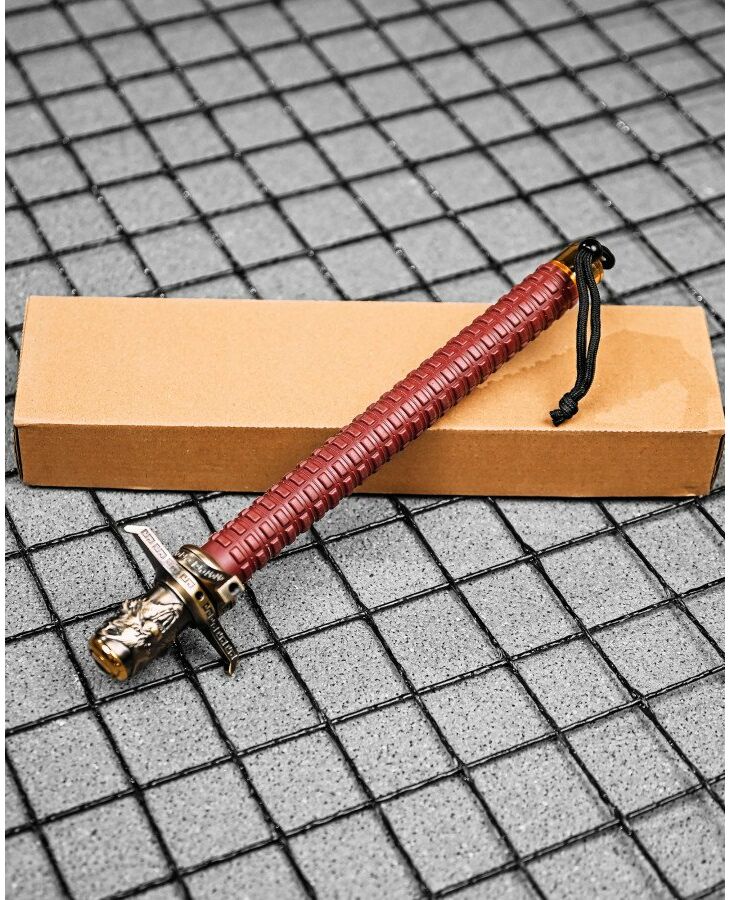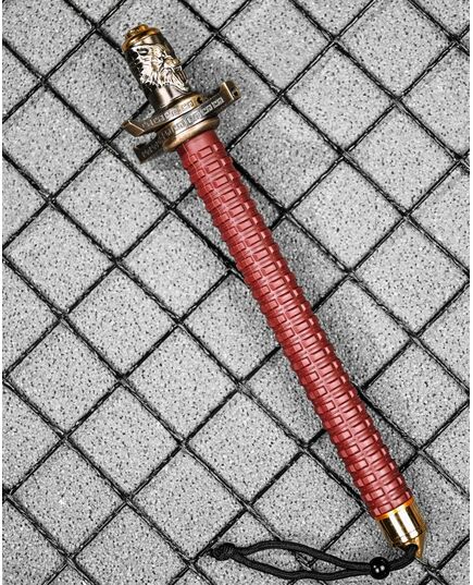 Металевий дубинка з унікальним дизайном, золотистим покриттям та красивим орнаментом на деталях.