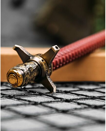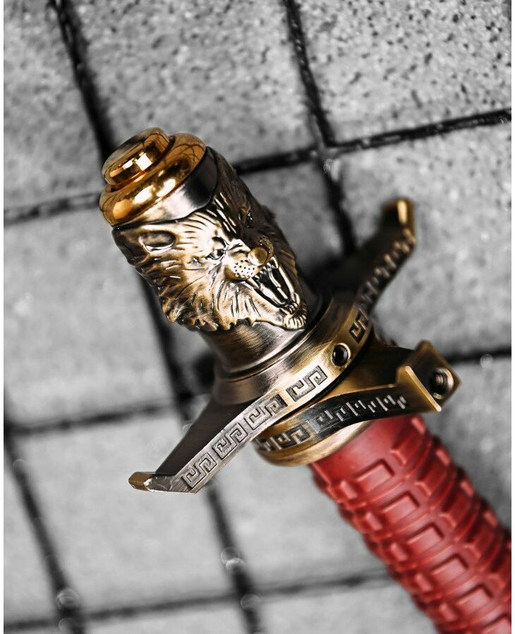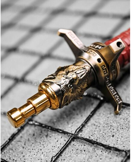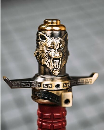 Стильні декоративні елементи – Золотисте покриття, орнаменти на гарді та детальне зображення голови вовка.