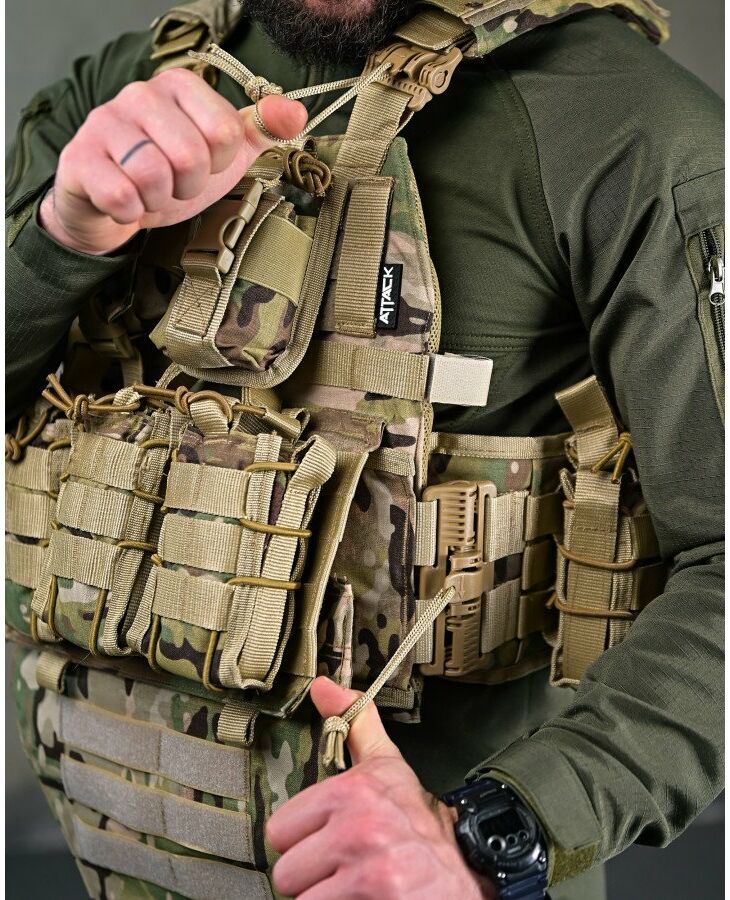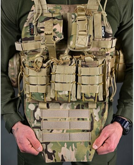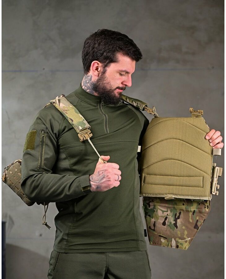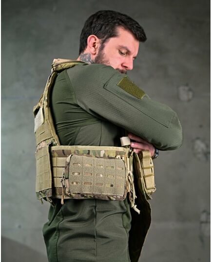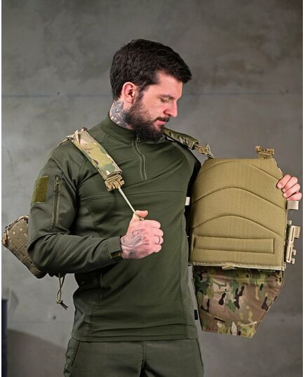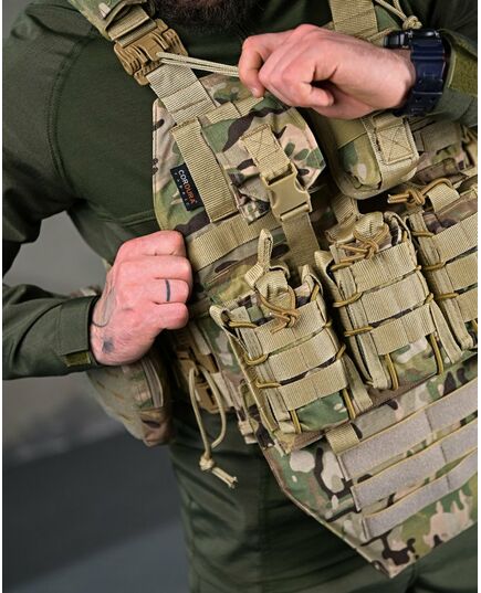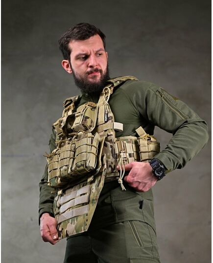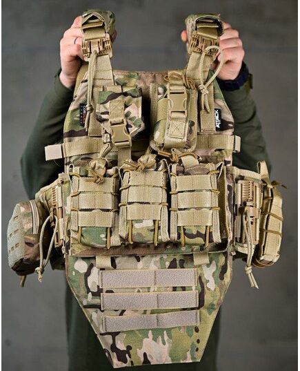 Швидкоскидна система забезпечує зручність і безпеку, а продумана ергономіка розподіляє вагу бронеплит та підсумків максимально рівномірно.Плити в комплект не входять — придбаваються окремо.