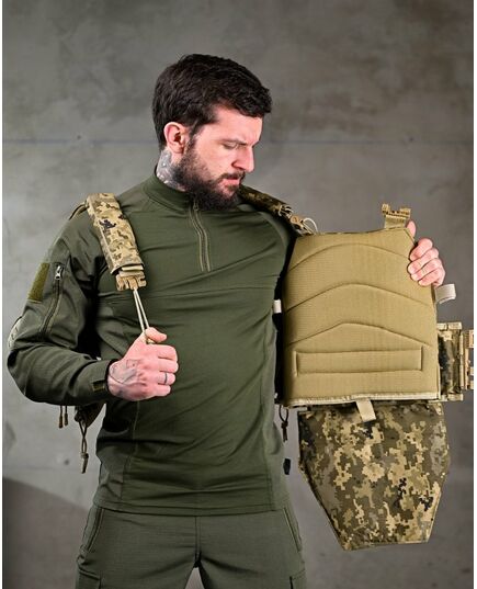 Плитоноска з напашником від бренду Single Sword – це високоякісний жилет з системою швидкого скидання, призначений для зручного та безпечного носіння.