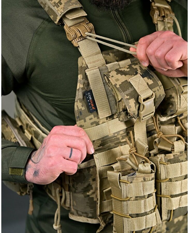 Матеріал Cordura 1000D забезпечує високу зносостійкість і довговічність плитоноски навіть в екстремальних умовах.