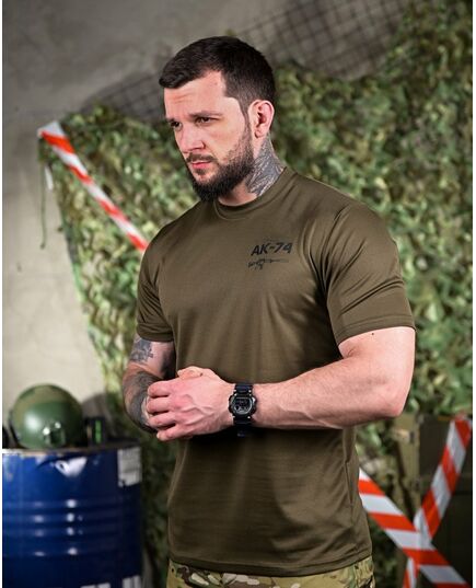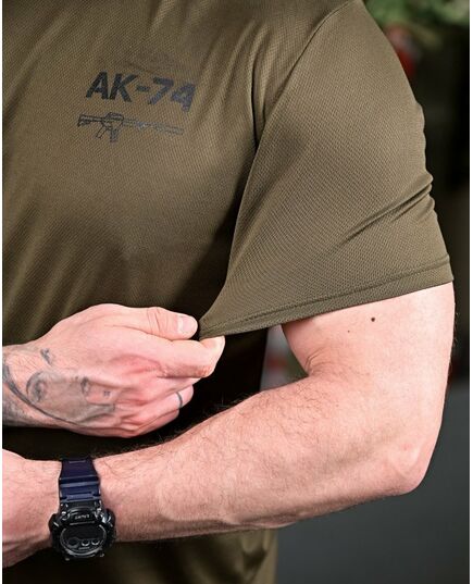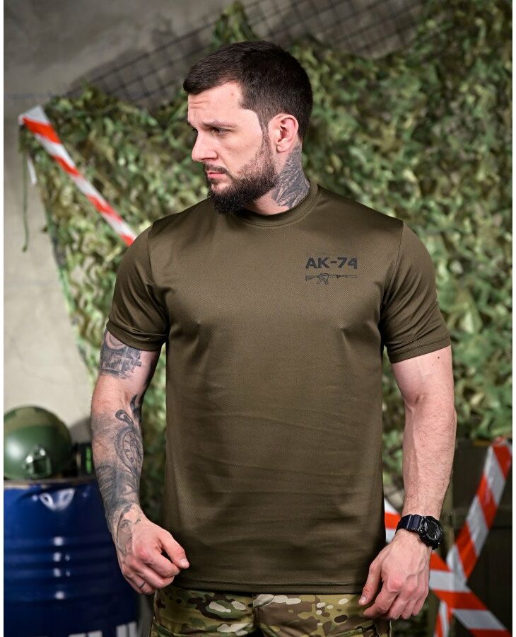 Тактична футболка з відводом поту АК-74 олива ПП7632