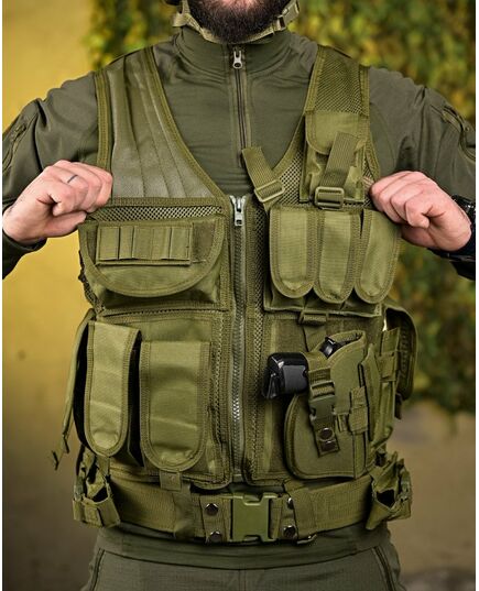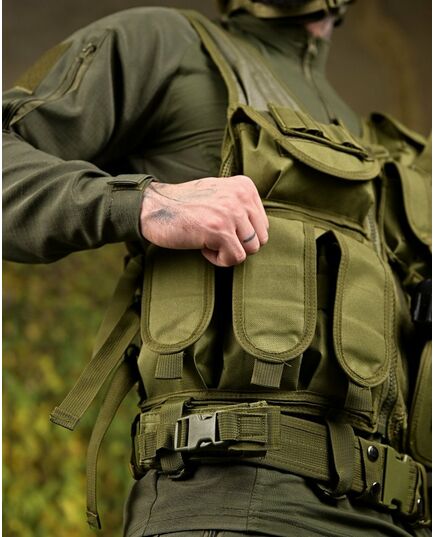 - У комплект входить регульований робочий ремень із двома знімними горизонтальними карманами для пістолетних магазинів
