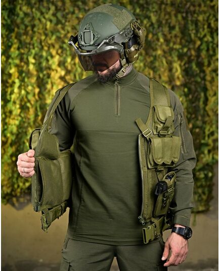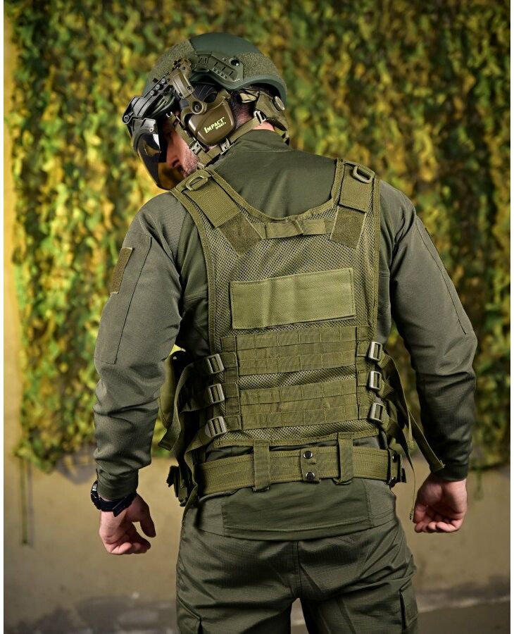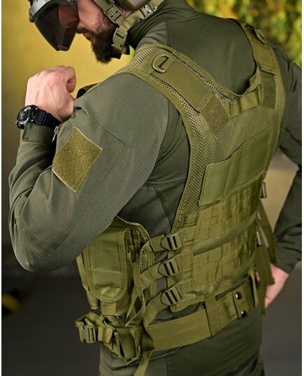 - Майданчик на липучці для модульної установки пістолетної кобури або підвійного підсумку для гвинтівкових магазинів.