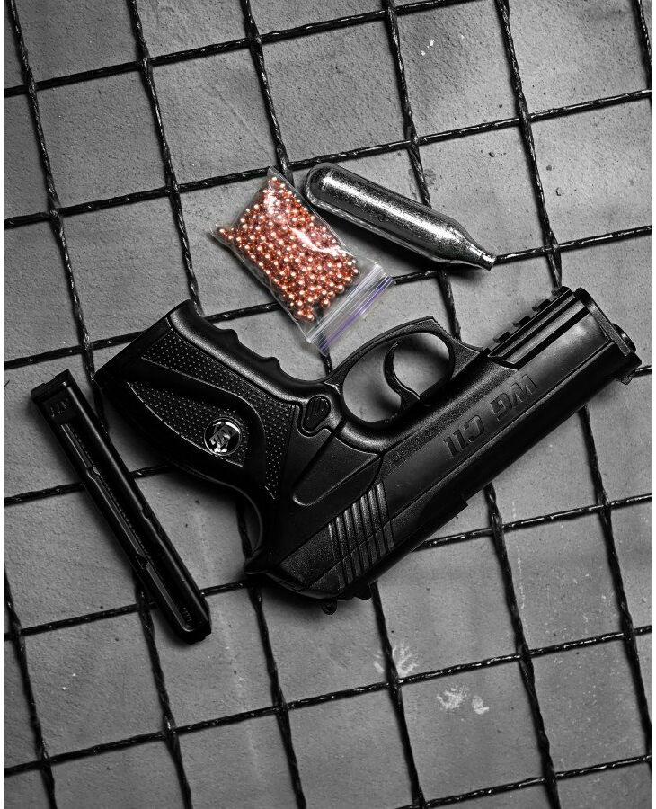 Має один з найвищих ККД витрати CO2 (т.е. дуже економічний). З одного балона можна зробити близько 80 повноцінних пострілів, потім потужність падає. Всего один балон дозволяє зробити до 115 пострілів. Має глибокий, але м’який спуск. Придатний для темпової стрільби, при швидкій стрільбі помітного падіння потужності не спостерігається. Запобіжник неавтоматичний, має два положення, зручно розташований з правого боку над спусковим гачком. Запобіжник не блокує спуск, а розмикає спусковий гачок з пружиною — при включеному запобіжнику спусковий гачок вільно рухається. Тобто ви НЕ зламаєте його, сильно натиснувши при увімкненому запобіжнику (СК пластиковий), як на деяких інших пістолетах.