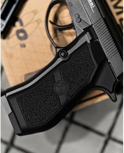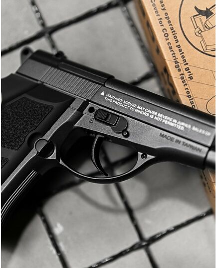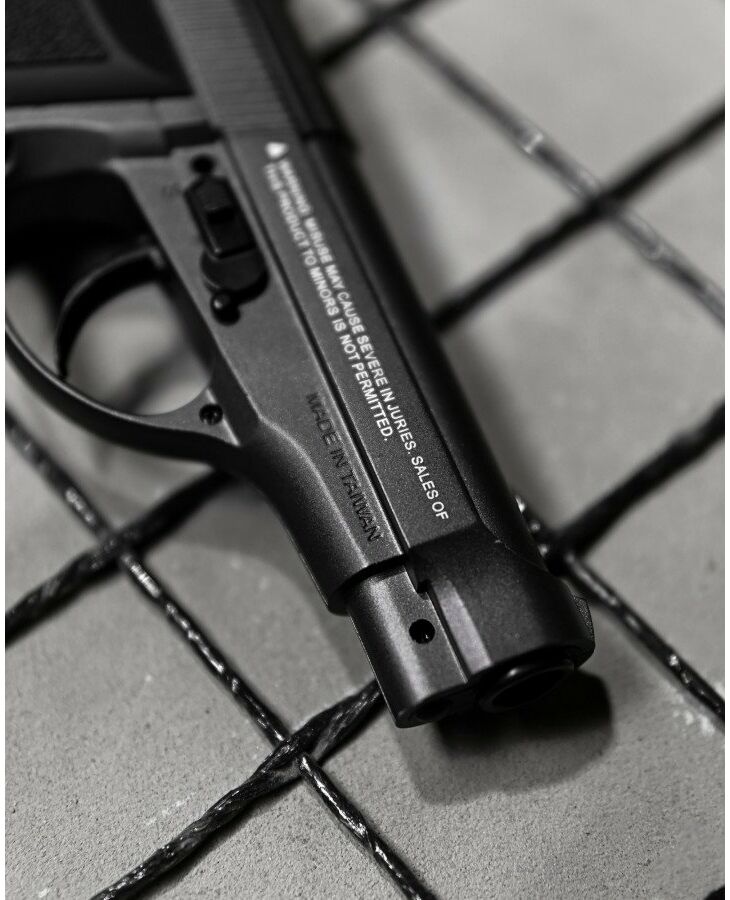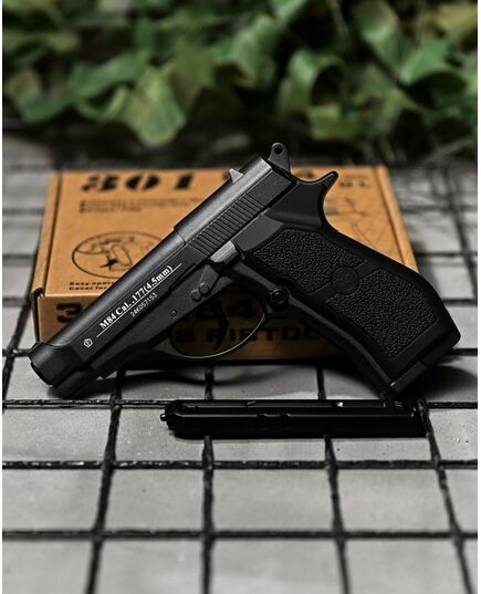 - Корпус Win Gun 301 Beretta 84 виготовлений повністю з металевого сплаву, а рукоятка з ударостійкого пластику та має приємну на дотик шорстку поверхню і зручно лягає в руку.