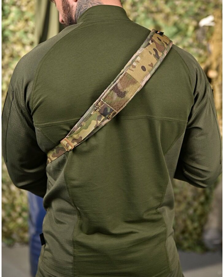 Регулюється по довжині, а також регульований м'який плечовий демпфер, що особливо актуально при перенесенні важкої зброї. Плечова накладка виготовлена з оригінальної Cordura і наповнена ізольованим піноматеріалом.