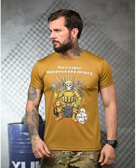 Тактична потоотводна футболка Посміхнись coyot ПП4683