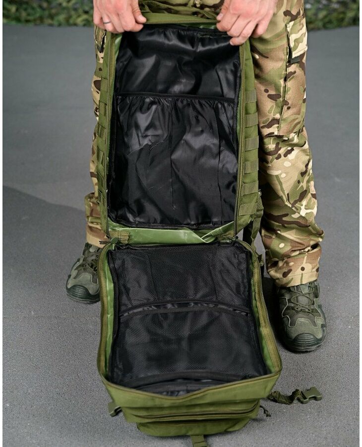 - Об'єм: 35 літрів (загальний об'єм усіх відділень). (Достатній об'єм для розміщення продуктів, води, одягу, ноутбука 15'', канцелярських приладдів, аптеки);