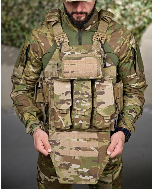 - Сумісність з бронеплитами: плити розміру 25×30 см (стандарт M або L)