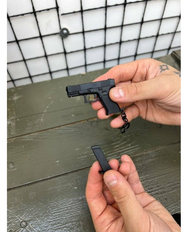 Невеликий пістолет-брелок у вигляді моделі M92 від всесвітньо відомого виробника Беретта. Сам пістолет не монолітний, а має робочі частини та вузли – магазин від'єднується, затвор пересмикується, можна навіть натиснути на курок. Комплектується кільцем для ключів.