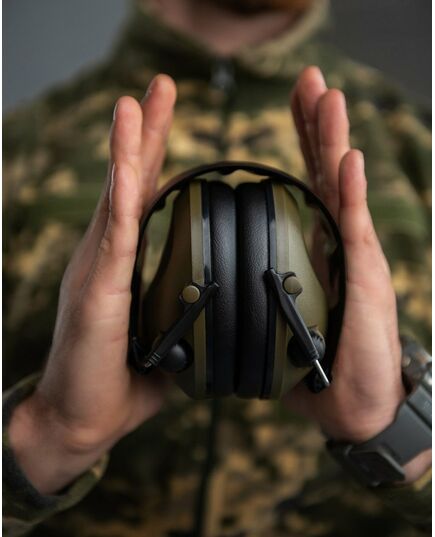 Професійні захисні навушники від бренду Silenta. Навушники не тільки захищають ваші вуха від впливу шкідливих шумів, але й одночасно забезпечують нормальне спілкування. Стерео мікрофони в активних навушниках приймають навколишні звукові сигнали і підсилюють, або заглушають їх залежно від їх сили (вимірюється в децибелах). Надто гучні (понад 8 90 dB) і занадто тихі (нижче 30-40 dB) звуки в результаті роботи активних навушників вирівнюються до середнього, комфортного для людського вуха, рівня гучності. Таким чином ви не тільки захищаєте свою чутку, але й отримуєте більш виразну звукову картину, наприклад, у лісі вчасно полювання, де важливий кожен ледь чутний звук переміщення людини або тварини. Потилична дужка дозволяє підлаштовувати їх під будь-який розмір голови. Можливе використання разом із шоломом. На потиличній дужці та на чашках навушників є приємна м'яка оббивка.
