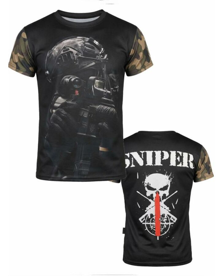 Фронт — бойовий вигляд, спина — графіка SNIPER з акцентним принтом.
