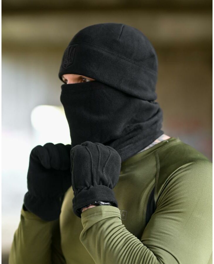 Тактичний зимовий комплект з трьох предметів — шапка, бафф і рукавички — створений для захисту від холоду і вітру при низьких температурах.