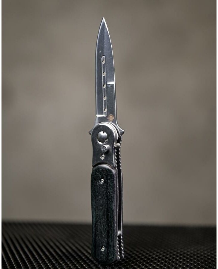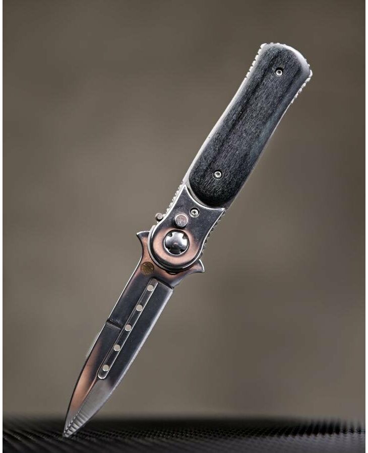 Зручний і надійний викидний ніж з підшипниковим механізмом — відкривається швидко і плавно одним натисканням кнопки. Підходить для повсякденного носіння, туризму, риболовлі та господарських завдань. Не є холодною зброєю.