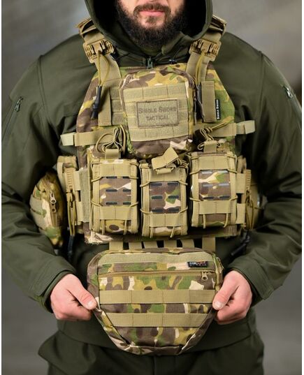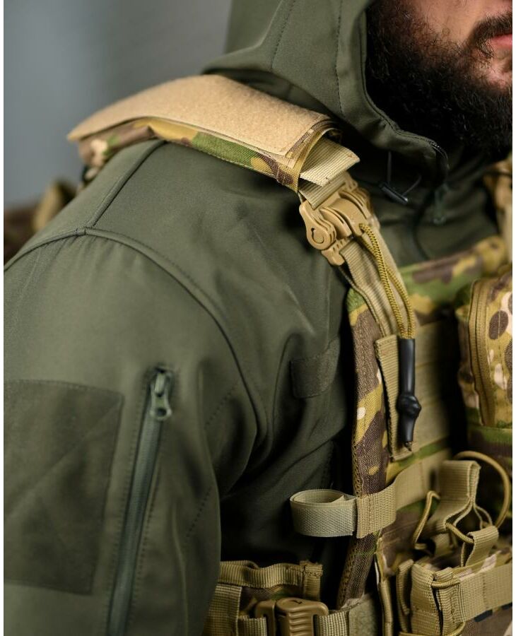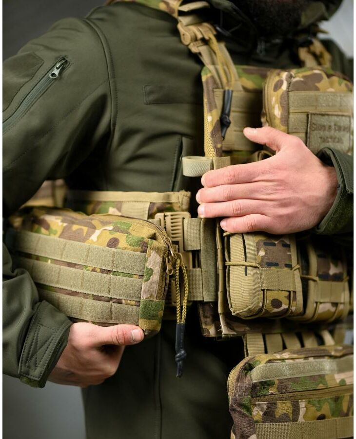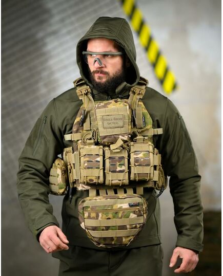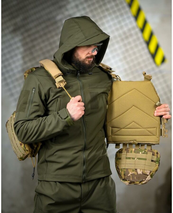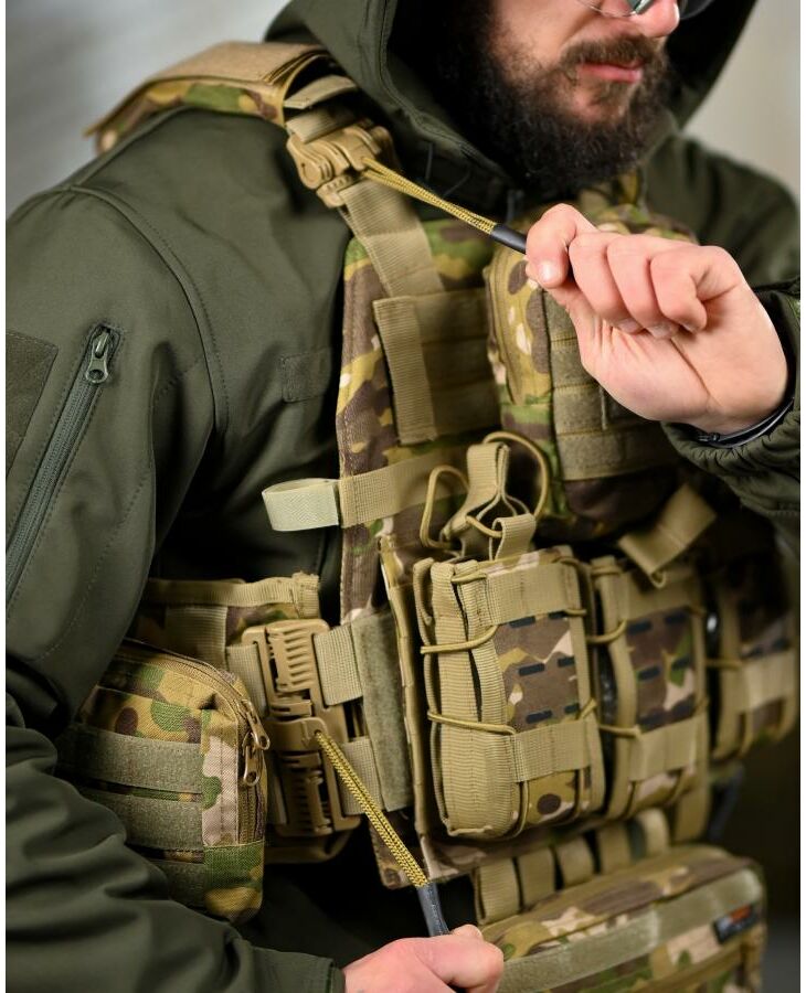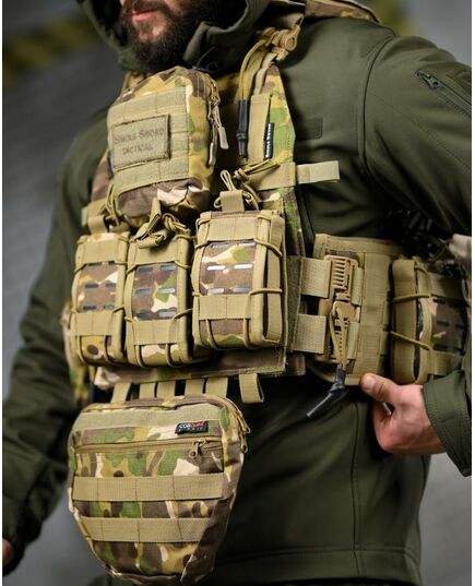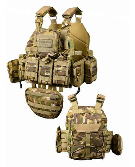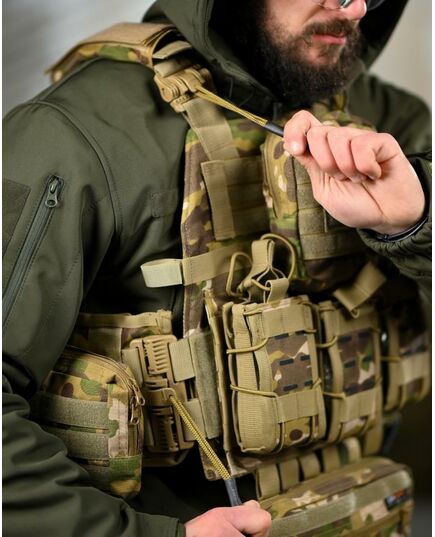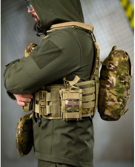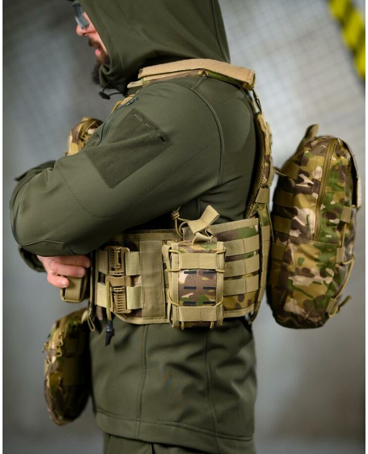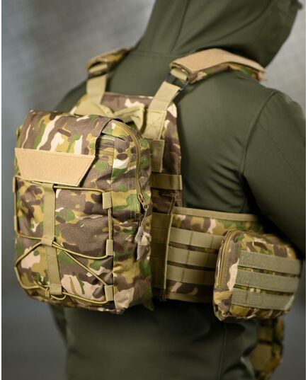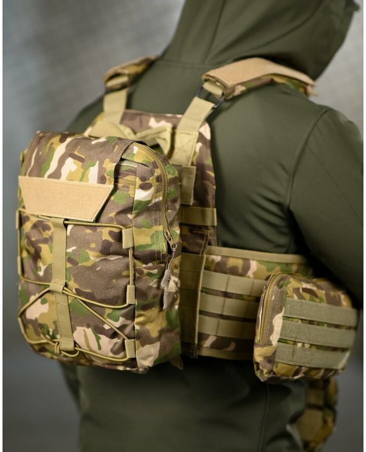 * На зворотній стороні знімний штурмовий рюкзак, який кріпиться на молле і дозволяє переносити як додатковий БК, так і гідратор.