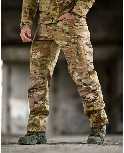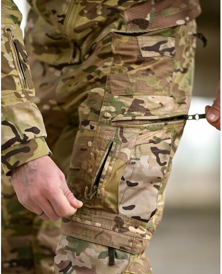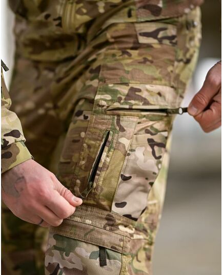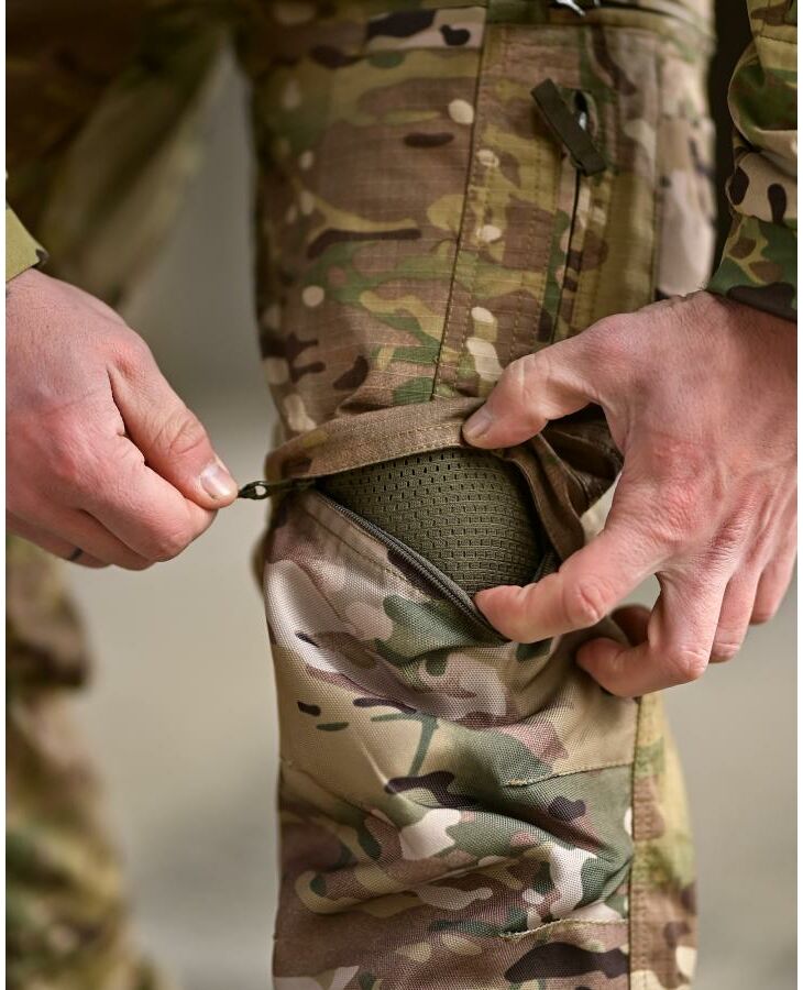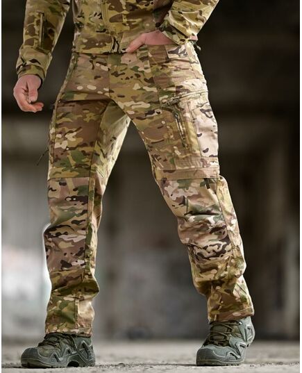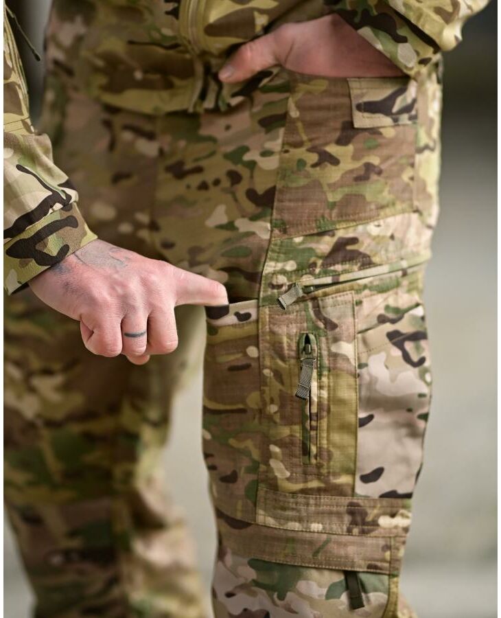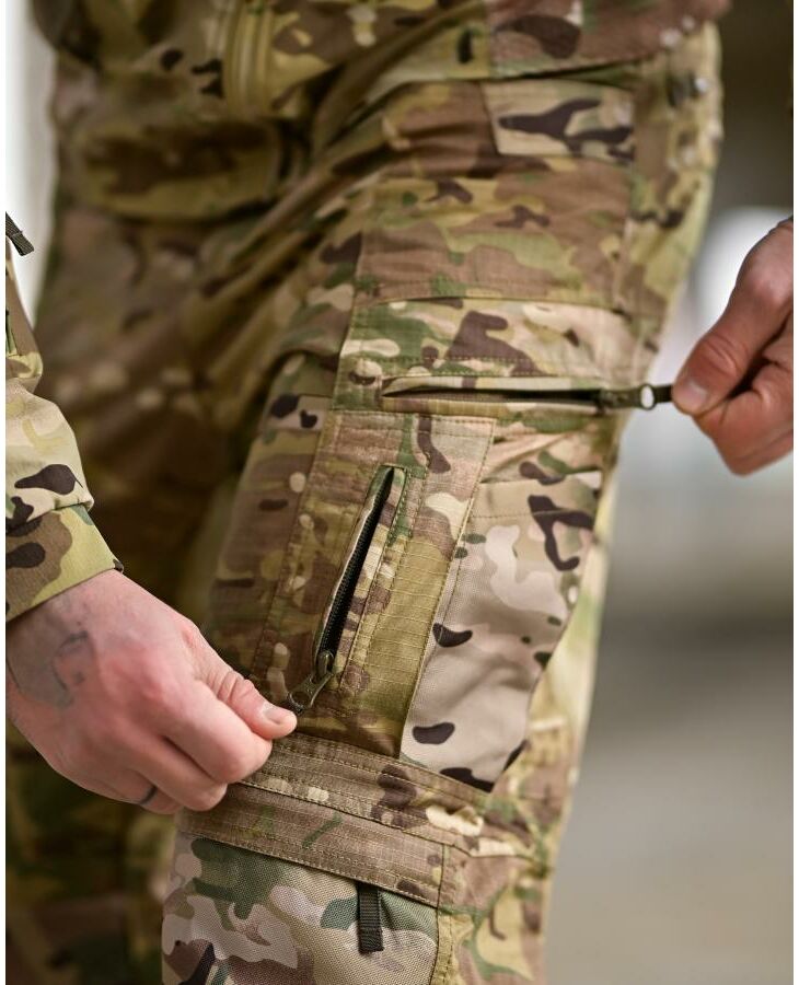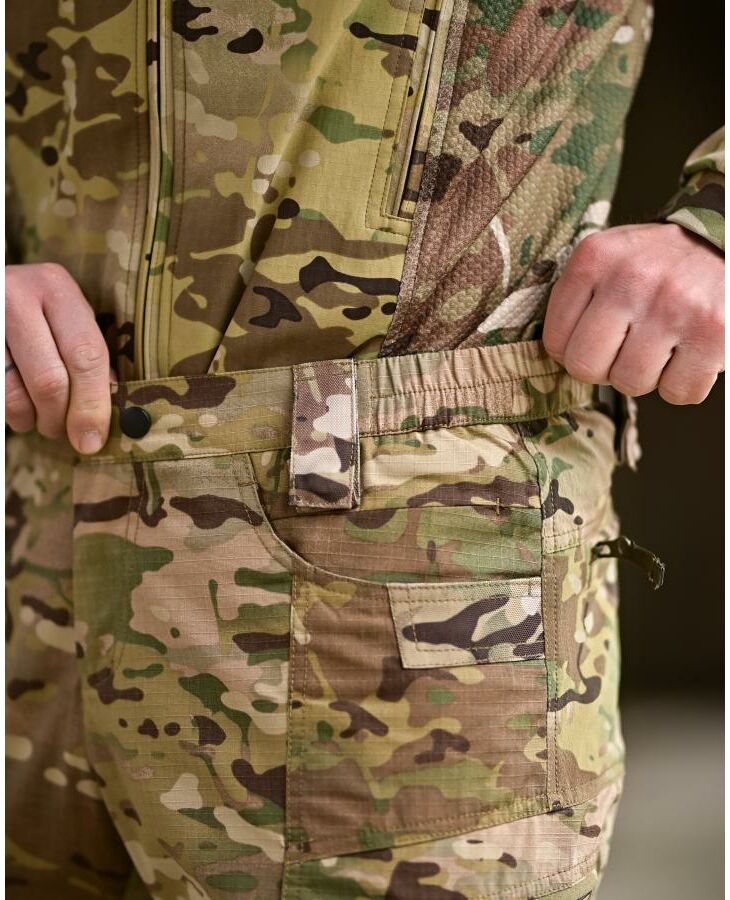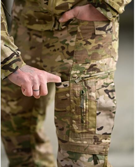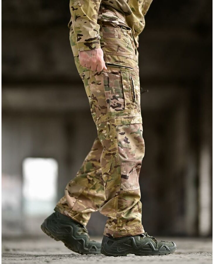 Штани виготовлені з високоякісного ріп-стопу зі складом 35% бавовна / 65% поліестер. Такий матеріал забезпечує хорошу повітропроникність, стійкість до зносу та комфорт під час тривалого носіння.