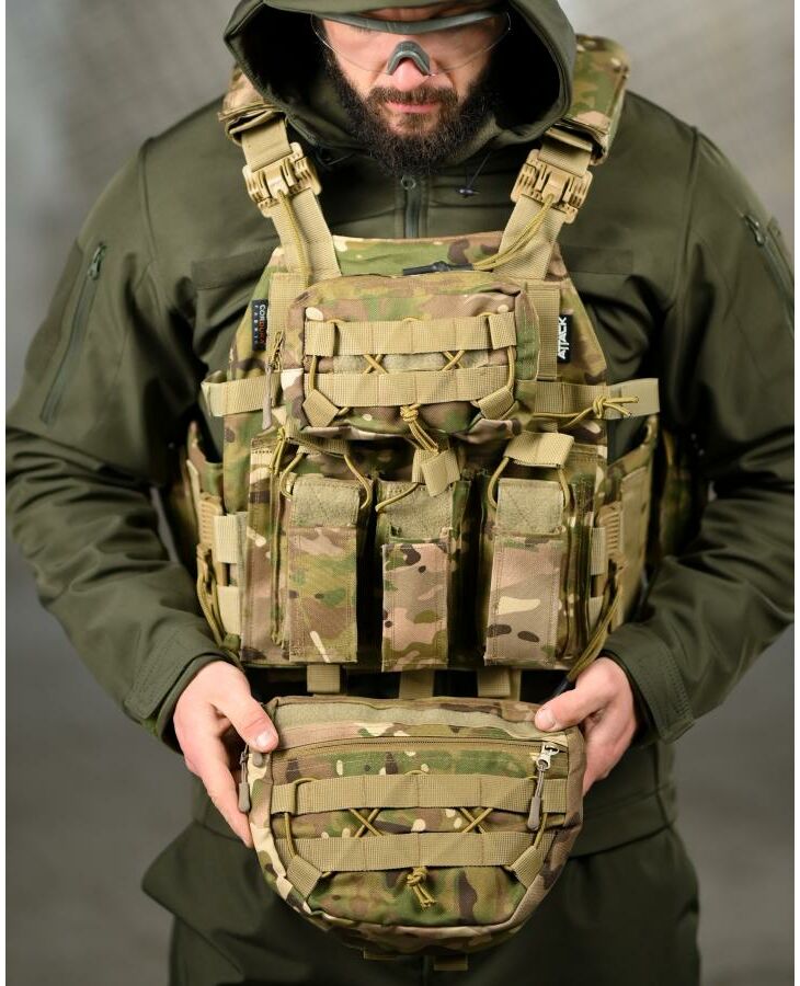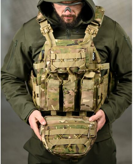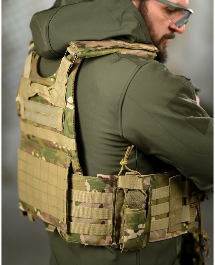 Професійна тактична плитоноска з модульною системою кріплення, призначена для розміщення бронеплит та додаткового спорядження. Забезпечує надійну фіксацію, ергономічну посадку та зручність при тривалому використанні.