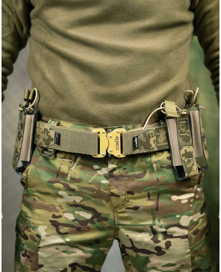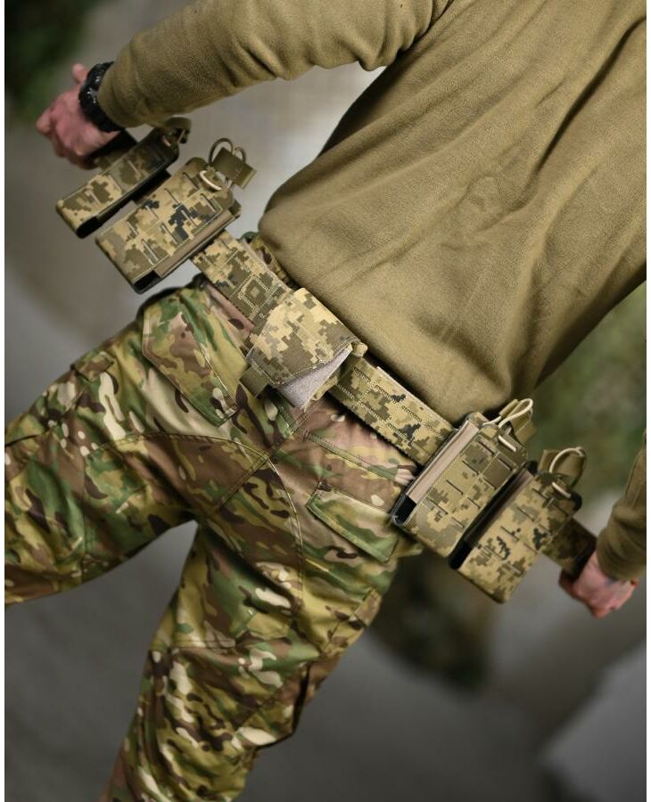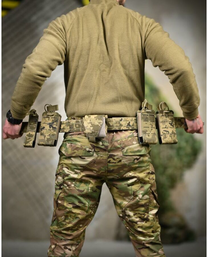 Функціональний тактичний пояс (battle belt) призначений для зручного розміщення бойового комплекту та спорядження. Підходить для військових завдань, тренувань, страйкболу, тактичних ігор та активного використання в польових умовах.