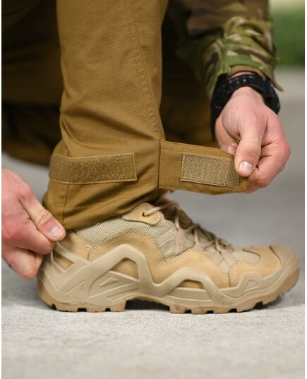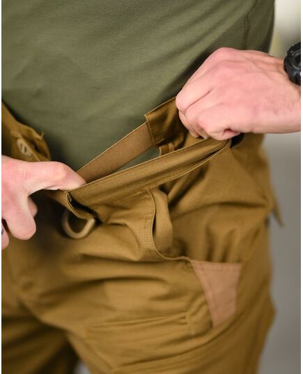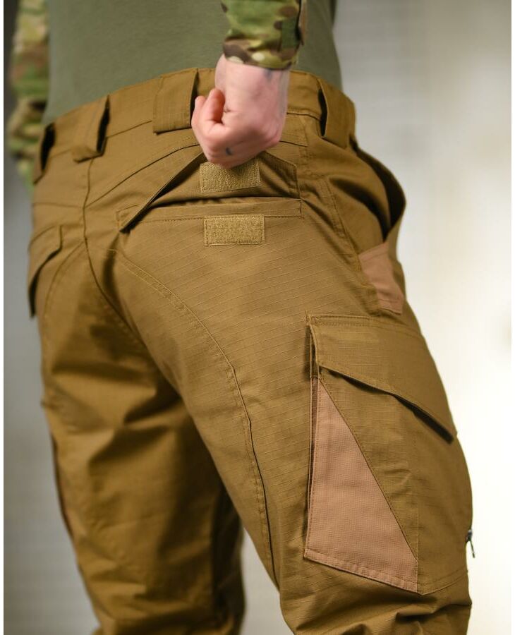 Штани виготовлені з міцної Rip-Stop тканини, яка стійка до розривів та зносу. У місцях з підвищеним навантаженням використовуються укріплені вставки з Cordura, що значно збільшує термін служби виробу.