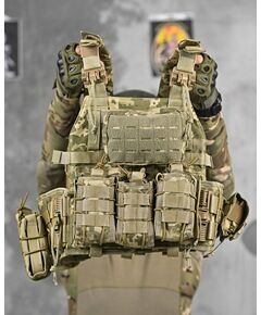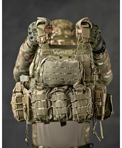 - Просторий тактичний пояс з системою кріплення MOLLE