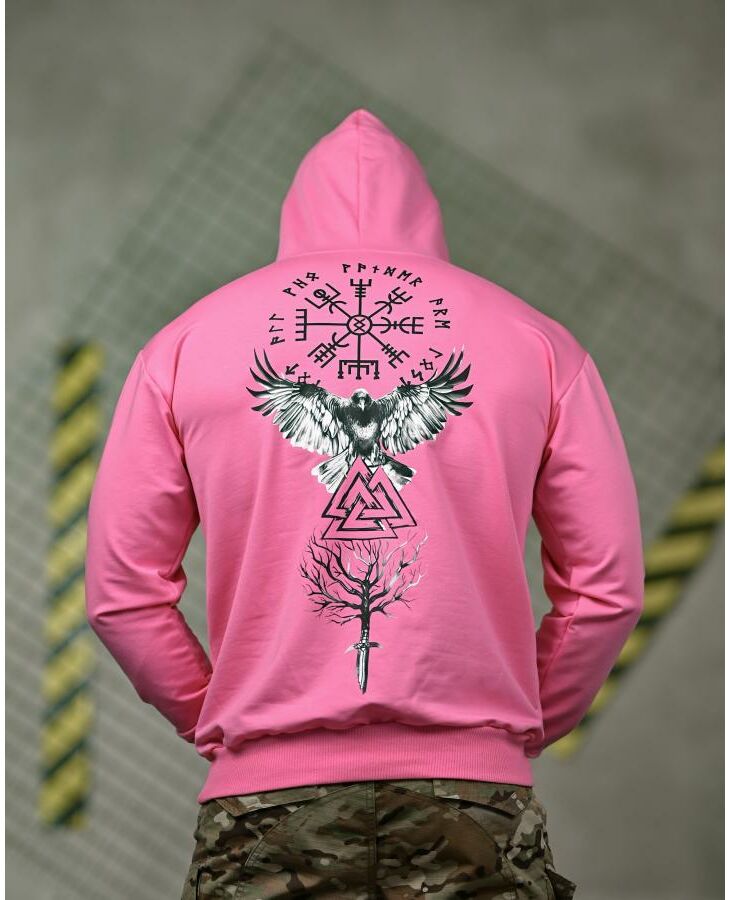 Виконано з двонитки — щільний і зносостійкий матеріал, тримає форму і комфортний у носінні. Класичний крій з капюшоном і кишенею-кенгуру.