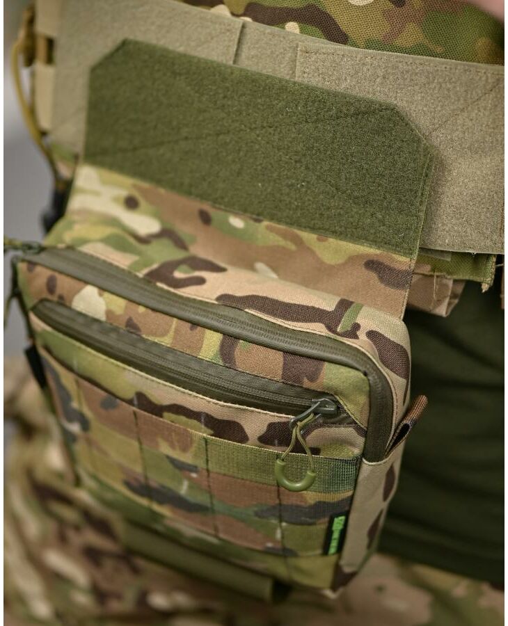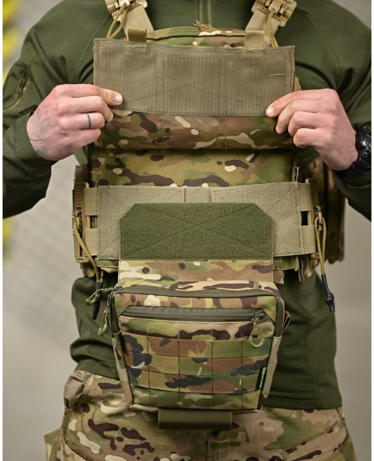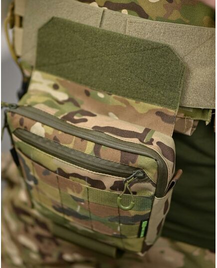 ця модель обладнана хлястиком з velcro липучки по всій своїй довжині і призначена для кріплення до плитоноски.