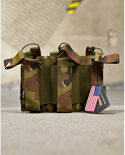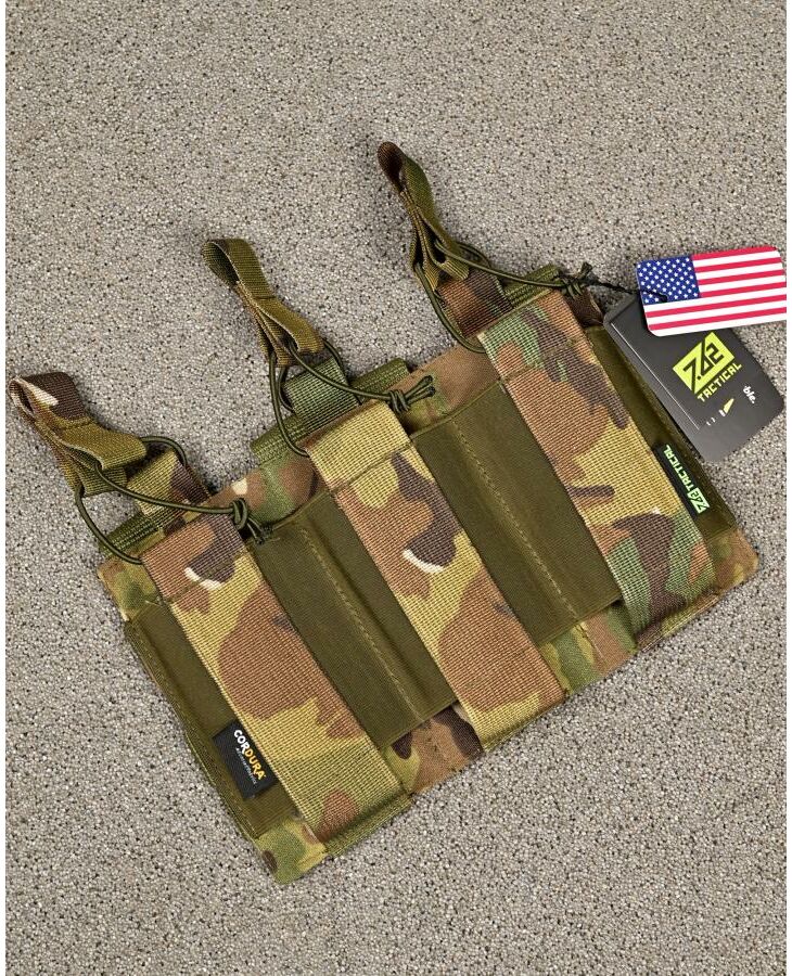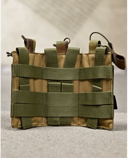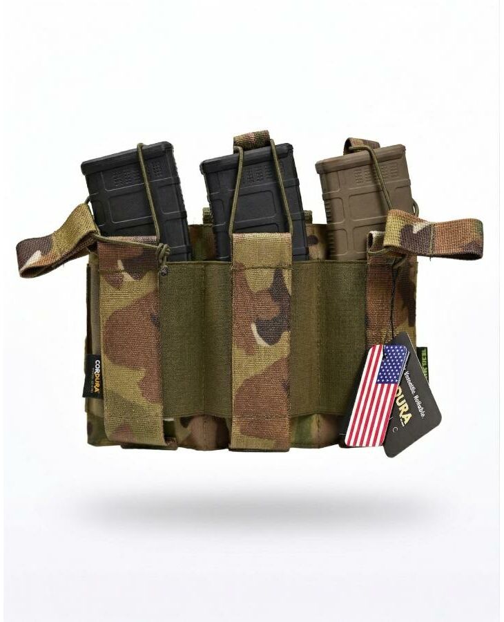 універсальний трійний підсумок під магазини AR і AK, Виготовлений з міцної Cordura® 500D, він поєднує надійність, жорсткість конструкції та зручність доступу до магазинів навіть при інтенсивній стрільбі